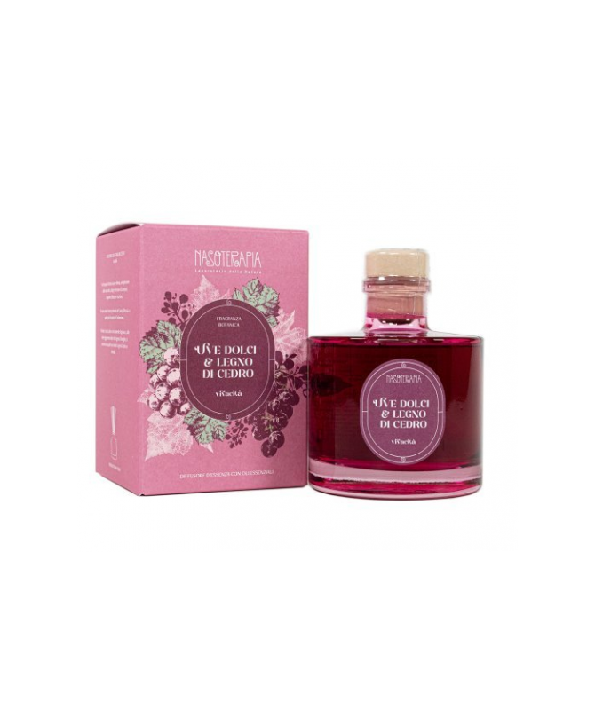 Per ricreare l'atmosfera inebriante dell'autunno prova il Diffusore con Bastoncini Uve Dolci e Legno di Cedro di Nasoterapia: il prodotto perfetto per regalare alla tua casa un profumo vivace e brioso.