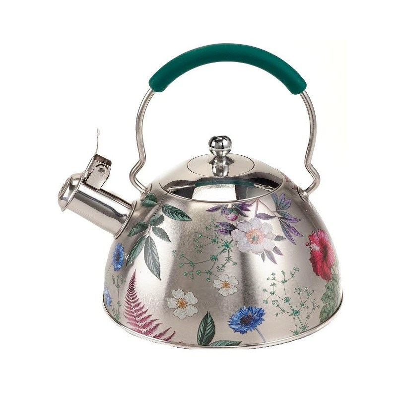 Bollitore a fischio in acciaio inox, con beccuccio dosatore e manico in silicone resistente al calore. Può essere utilizzato sia su piano a gas che a induzione. Impreziosito da decorazioni floreali dalle linee eleganti e delicate, è un piacevole complemento d’arredo ed è ideale per la preparazione di tisane e infusi. Il suono del fischio che annuncia l’acqua bollente è un invito a rallentare questa vita frenetica, a prendersi cura di sé e a immergersi nei profumi e sapori della natura: un accessorio immancabile per momenti di relax e benessere.