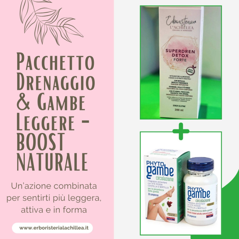 Il kit naturale per drenare, alleggerire e tonificare le gambe. Con Superdren + Phytogambe a prezzo promo e tisane in omaggio!