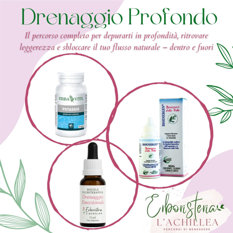 🌸 Miscela Floriterapica Drenaggio Emozionale – lavora sul piano psicosomatico, favorendo il rilascio di emozioni trattenute (composizione personalizzata con Fiori di Bach e Australiani)
