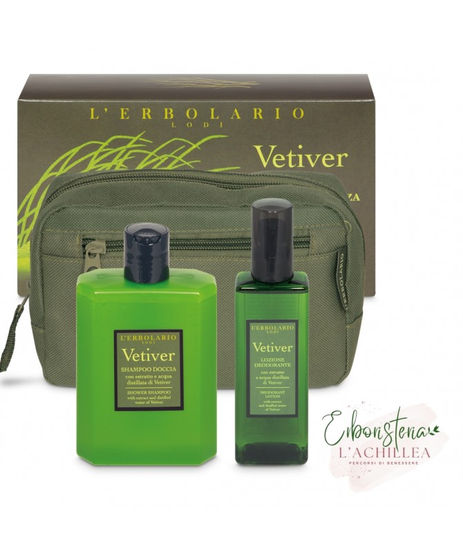 L' Erbolario - la verde freschezza del Vetiver è racchiusa in questa pochette, che contiene shampoo doccia e lozione deodorante , un duo speciale per la detersione e il comfort quotidiani .