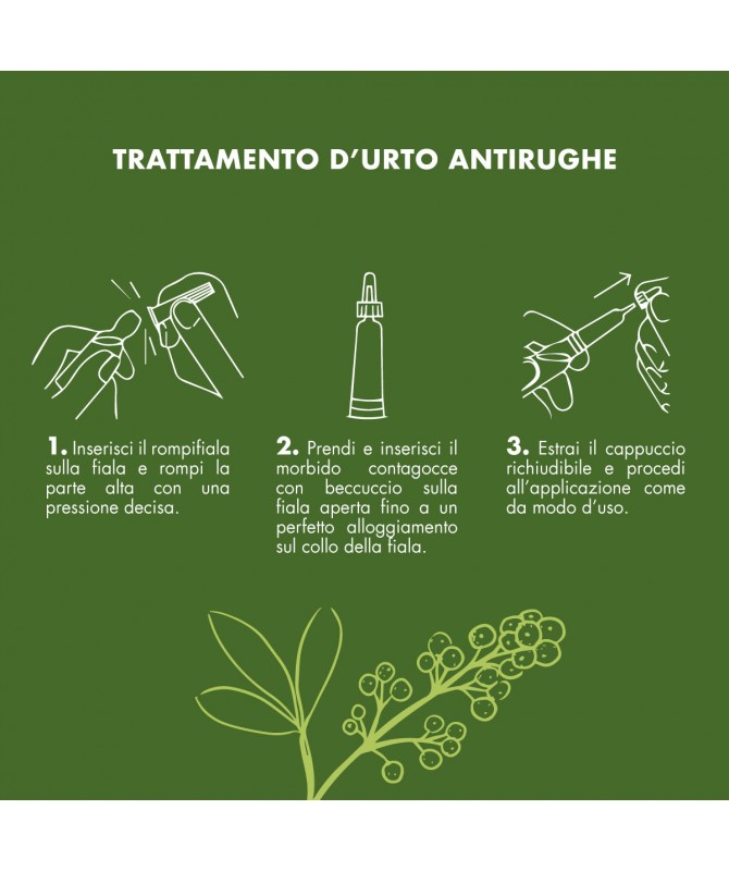 Formula altamente concentrata con più del 30% di attivi, contiene sia estratti naturali vegetali che molecole biotecnologiche selezionate per agire in sinergia con un effetto antirughe botox-like quali:
