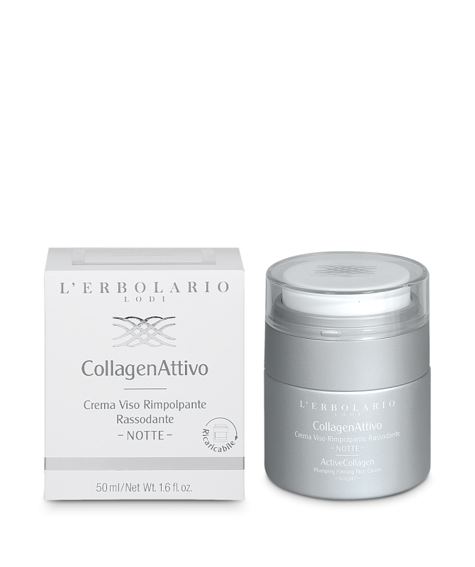 L'Erbolario Crema Viso Notte CollagenAttivo è un trattamento notte con Collagene e Acido Ialuronico per Pelli Mature ad azione Rimpolpante - formato 50 ml