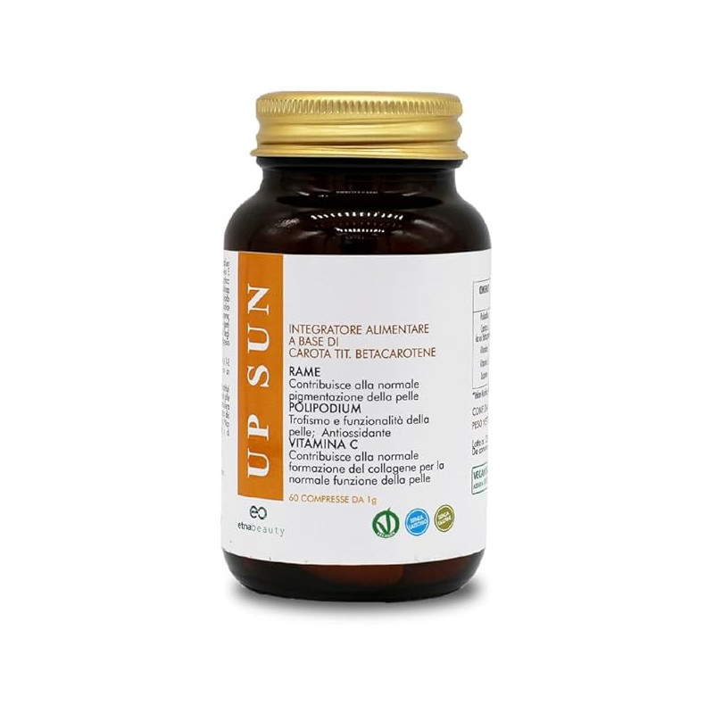 UP-SUN è un supplemento alimentare a base di estratti vegetali e vitamine la cui formula è stata pensata per proteggere e preparare la pelle all’esposizione dei raggi UV del sole e per aiutare a mantenere una pelle sana aumentandone le difese quando questa è già esposta all’azione dei raggi solari, offrendo quindi una protezione completa nei confronti di danni quali eritema, scottature ed iperpigmentazione.
