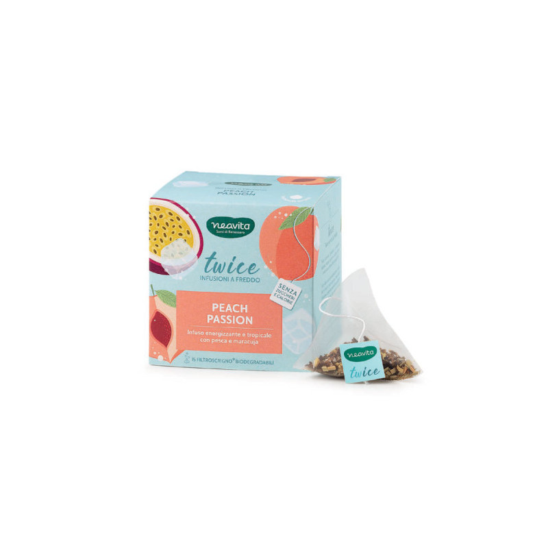 Il benessere di Twice sempre con te. Il maxi filtro ospita la quantità ideale di piante, fiori e frutti per l’infusione in mezzo litro d’acqua. Perfetto da utilizzare con le borracce termiche Neavita. Le note inconfondibili della pesca incontrano la dolcezza acidula del frutto della passione, per idratarsi con gusto ed energia.